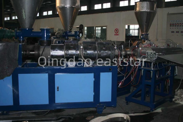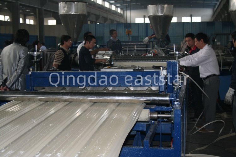 SJSZ-80/156 PVC/ASA ကော်ဖတ်စာရွက် ထုတ်လုပ်မှုလိုင်းသည် ဆောက်လုပ်ရေးတွင် အသုံးပြုသော ကော်ဖတ်စာရွက်များအတွက် အထူးထုတ်လုပ်ထားသော ပရော်ဖက်ရှင်နယ် ထုတ်လုပ်မှု စက်ကိရိယာတစ်ခုဖြစ်သည်။ PVC အောက်ခံအလွှာနှင့် ASA ရာသီဥတုဒဏ်ခံနိုင်သော မျက်နှာပြင်အလွှာတို့ကို ပြီးပြည့်စုံသော ပူးတွဲ extrusion ရရှိရန်အတွက် ပင်မနှင့် အရန်နှစ်ခု extruder ဖွဲ့စည်းမှုပုံစံကို လက်ခံပါသည်။ ထုတ်လုပ်မှုလိုင်းတွင် conical twin-screw main extruder (စွမ်းရည် 380-420 kg/h)၊ single-screw auxiliary extruder၊ 1300mm coat hanger-type dispensing die၊ နှင့် 1088mm ပုံသဏ္ဍာန်နှင့် ဆွဲအားဖြတ်တောက်မှုစနစ်တို့ ပါ၀င်ပါသည်။ စံ5မီလီမီတာ အထူရှိသော စာရွက်များကို ထုတ်လုပ်နိုင်စွမ်းရှိသည်။ စက်ပစ္စည်းများသည် အသိဉာဏ်ရှိသော ထိန်းချုပ်မှုစနစ်ကို လက်ခံကျင့်သုံးပြီး လည်ပတ်ရန်နှင့် ထိန်းသိမ်းရန် လွယ်ကူပြီး ရင်းနှီးမြှုပ်နှံမှုကာလတိုဖြင့် ပြန်လာနိုင်သောကြောင့် ၎င်းသည် အဆောက်အအုံကြွေပြားဈေးကွက်သို့ ဝင်ရောက်ခြင်း သို့မဟုတ် ချဲ့ထွင်ရန်အတွက် စံပြရွေးချယ်မှုတစ်ခုဖြစ်သည်။ ၎င်းသည် တည်ငြိမ်သော ထုတ်ကုန်အရည်အသွေးနှင့် မြင့်မားသော ထုတ်လုပ်မှု ထိရောက်မှုကို ပြသသည့် ပြည်တွင်းနှင့် နိုင်ငံတကာ ဆောက်လုပ်ရေး ပစ္စည်းများ ကုမ္ပဏီအများအပြားကို အောင်မြင်စွာ ထမ်းဆောင်ခဲ့သည်။